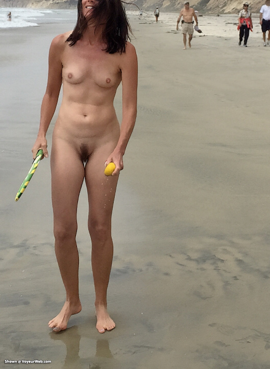 It was a cloudy day at the beach but that didn't stop me from stripping nude, playing some beach paddle ball and splashing around in the waves. We had a great time, just look at my smile! By the way, Sparky took these pics with a disposable water proof camera since he didn't want to risk dropping his iphone into the ocean or getting it ruined with our sandy beach play. Sorry if the clarity is not quite as sharp as usual but that's due to the overcast conditions and cheap camera. It was even more exciting having to take the disposable camera to CVS pharmacy to get the prints made. The next day when I picked up the prints, the CVS guy behind the counter gave me a big smile, a thumbs up and said "thanks for making my day so much more enjoyable." Later I photo scanned the prints to digitize them to upload here. What a process! so I hope you enjoy all the extra effort I put into creating this 10 pic contri. I also hope ya like my natural bush. It's fun having a retro look for awhile but I'll likely shave my pussy smooth again soon! Please vote and comment below to let me know your favorite pic. I love earning your top vote so thanks always for supporting my nude adventures. If ya really like these pics, maybe more to cum in March! .... xoxo Nirvana